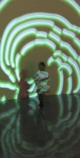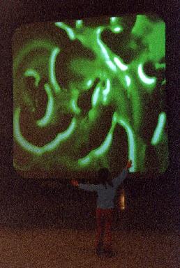 The simulation of a neuronal network is excitable through the movement of the spectators. Comparable with the eye, a camera recognizes the movement of objects in space and transmits the video signal to the neuronal network which is composed of roughly half a million neurons arranged to a 2-dimensional array. Each neuron is coupled with its neighbored neurons. The activity of the neurons is color-coded. Bright areas are particularly active. One recognizes that local excitations lead to the formation of coherent patterns, comparable to the observations in visualisations of brain activity. The activity fronts spread over the whole network. The information corresponding to "perception" is represented in the global activity patterns rather than in each single neuron.