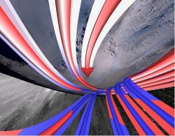 Innerhalb des Attraktors herrscht die divergierende Mannigfaltigkeit. Dort driften benachbarte Zustände unter der chaotischen Dynamik exponentiell auseinander. Das ist der Grund, warum chaotische Dynamiken nicht gut vorhersagbar sind. In der Metaphorik der Achterbahn ist dies die laterale Richtung, die durch eine Zentrifugalkraft dominiert wird. Beide Mannigfaltigkeiten sind durch eine sehr komplexe Bandstruktur gegeben. Es handelt sich um Möbiusbänder, die keine Orientierung, also kein Vorne und Hinten besitzen. Nach einigen Umläufen auf dem Attraktor kippt daher immer wieder die in Bezug auf die externe Welt aufrechte Richtung.
